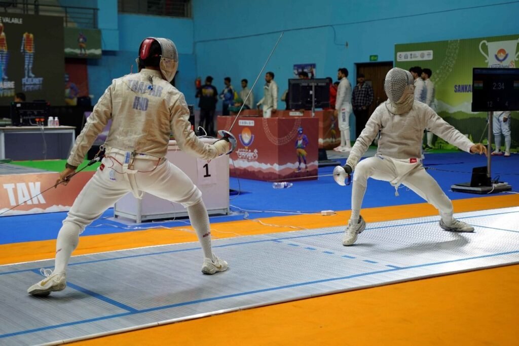 देहरादून,11फरवरी2025। 38वें राष्ट्रीय खेल 2025 में तलवारबाजी के तीसरे दिन कड़ी प्रतिस्पर्धा देखने को मिली, तलवारबाजों ने पुरुषों की सेबर और महिलाओं की एपी स्पर्धाओं में वर्चस्व के लिए संघर्ष किए। तमिलनाडु के निधि गिशो ने शानदार प्रदर्शन करते हुए पुरुषों की सेबर श्रेणी में स्वर्ण पदक जीता, उन्होंने सर्विसेज के ओइनम जुबराज को 15-12 से हराया। झारखंड के विशाल थापर और महाराष्ट्र के आदित्य अंगल को कांस्य पदक से संतोष करना पड़ा ।