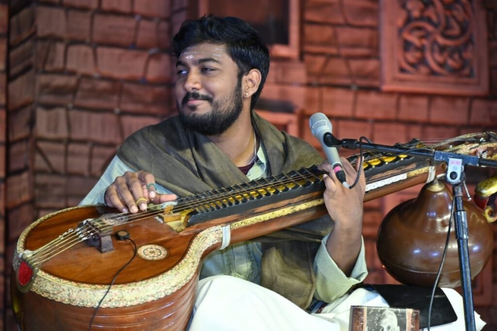 देहरादून। सांस्कृतिक संध्या की पहली प्रस्तुति में रमण बालाचंद्रन ने मनमोहक धुन और राग देकर सरस्वती वीणा पर भव्य प्रस्तुति देकर शुरूआत की I उनके साथ मृदंगम पर श्रीपात्री सतीश कुमार ने साथ दिया । पहला राग अबोगी-नम्मू ब्रोवा रहा, जिसने कि सभी को वीणा संगीत पर भक्ति में तल्लीन कर लिया I अगली प्रस्तुति रागम और तालम खमाज की रही फिर अगली प्रस्तुति आदि तालम पर आधारित पल्लवी रही I