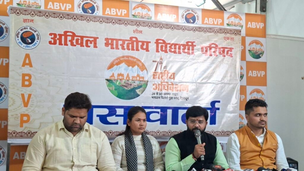 देहरादून। देवभूमि उत्तराखण्ड पहली बार अखिल भारतीय विद्यार्थी परिषद (अभाविप) के 71वें राष्ट्रीय अधिवेशन की मेज़बानी करने जा रहा है। आगामी 28 से 30 नवंबर तक देहरादून के परेड ग्राउंड में अस्थायी रूप से बसाए गए भव्य ‘भगवान बिरसा मुंडा नगर’ में यह राष्ट्रीय आयोजन होगा, जिसमें देशभर से 1500 से अधिक प्रतिनिधि—विद्यार्थी, शिक्षक, शिक्षाविद, पूर्णकालिक कार्यकर्ता तथा प्रमुख विश्वविद्यालयों के छात्रसंघ पदाधिकारी—शामिल होंगे।