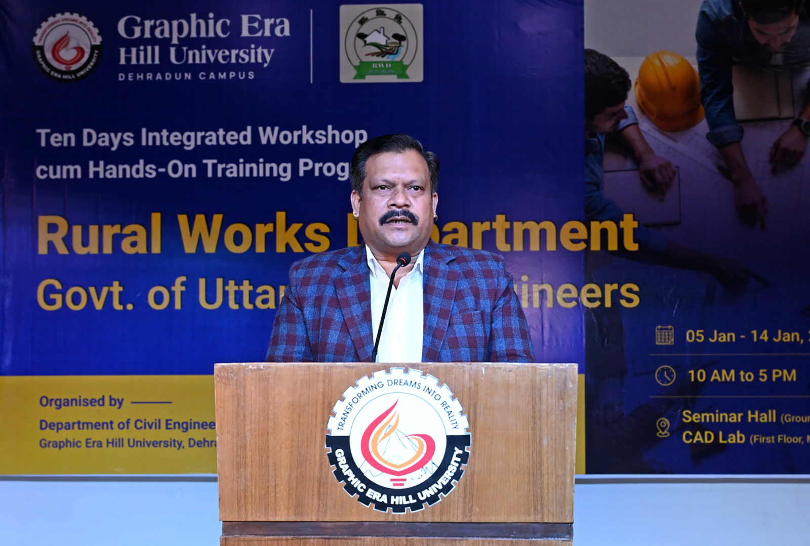 कार्यशाला का आयोजन ग्राफिक एरा हिल यूनिवर्सिटी के स्कूल ऑफ मैनेजमैंट और डिपार्टमेंट ऑफ सिविल इंजीनियरिंग ने संयुक्त रूप से किया। कार्यक्रम में डीन एकेडमिक्स डा. प्रमोद नायर, स्कूल ऑफ मैनेजमैंट के हेड डा. विशाल सागर, डिपार्टमेंट ऑफ सिविल इंजीनियरिंग के हेड अनूप बहुगुण, डा. श्याम सुंदर कापरी, इंजीनियर तेज पाल, इंजीनियर एल पी भट्ट,  शामिल रहे। कार्यक्रम का संचालन डा. श्वेता चैहान ने किया।