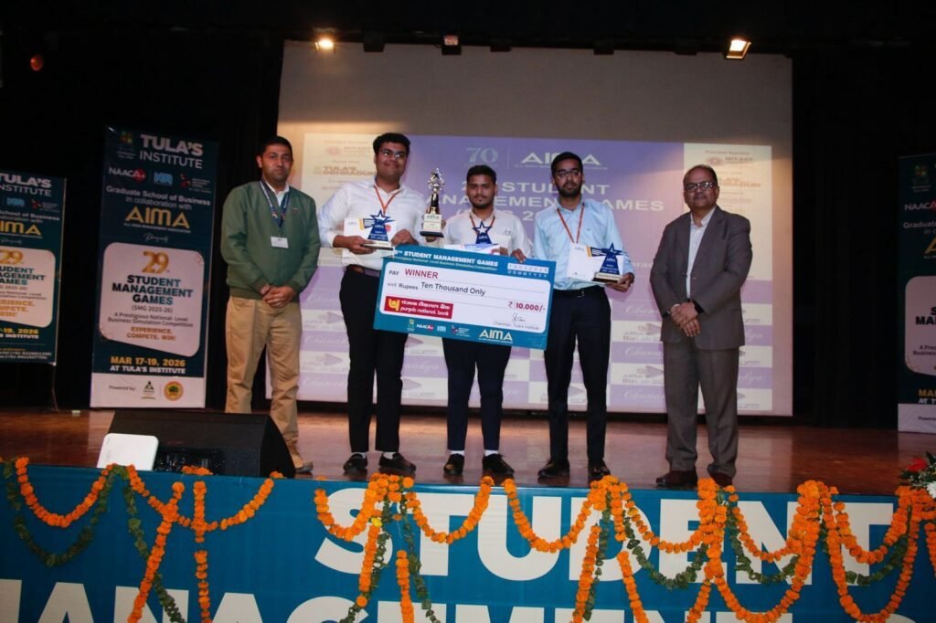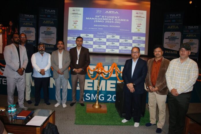 देहरादून। तुलाज़ इंस्टीट्यूट, देहरादून ने हाल ही में तीन दिवसीय एआईएमए स्टूडेंट मैनेजमेंट गेम्स (एसएमजी) रीजनल राउंड 2025–26 का सफल आयोजन किया। इस आयोजन में विभिन्न संस्थानों के छात्रों ने भाग लेकर प्रतिस्पर्धात्मक और ज्ञानवर्धक अनुभव प्राप्त किया। कार्यक्रम की शुरुआत उद्घाटन समारोह के साथ हुई। प्रतियोगिता में 7 संस्थानों की कुल 54 टीमों ने भाग लिया।