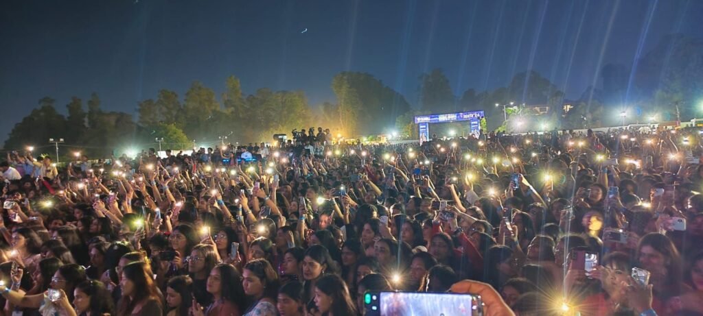 मंगलवार को पथरी बाग स्थित एसजीआरआर विश्वविद्यालय के हेलीपैड ग्राउंड पर हाई वोल्टेज साउंड और शानदार लाइटिंग के बीच विशाल मिश्रा के सुप्रसिद्ध बॉलीवुड गीतों की गूंज ने हजारों दर्शकों को झूमने पर मजबूर कर दिया। दो दिवसीय वार्षिक सांस्कृतिक महोत्सव के अंतिम दिन लव सॉन्ग्स की खास धूम रही, जिसने खासकर युवा वर्ग में जबरदस्त उत्साह भर दिया। हज़ारों की संख्या में उपस्थित विश्वविद्यालय के छात्र-छात्राओं ने विशाल मिश्रा कॉन्सर्ट का भरपूर लुत्फ उठाया।