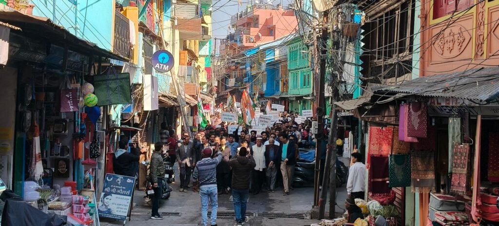 अल्मोड़ा । कांग्रेस की ‘अंकिता भंडारी न्याय यात्रा’ सोमवार को अल्मोड़ा में निकाली गई, जिसमें पूर्व प्रदेश कांग्रेस अध्यक्ष एवं कांग्रेस वर्किंग कमेटी (CWC) सदस्य करन माहरा ने नेतृत्व किया। बड़ी संख्या में कांग्रेस कार्यकर्ताओं, महिलाओं, युवाओं और आम नागरिकों ने इस यात्रा में भाग लिया।