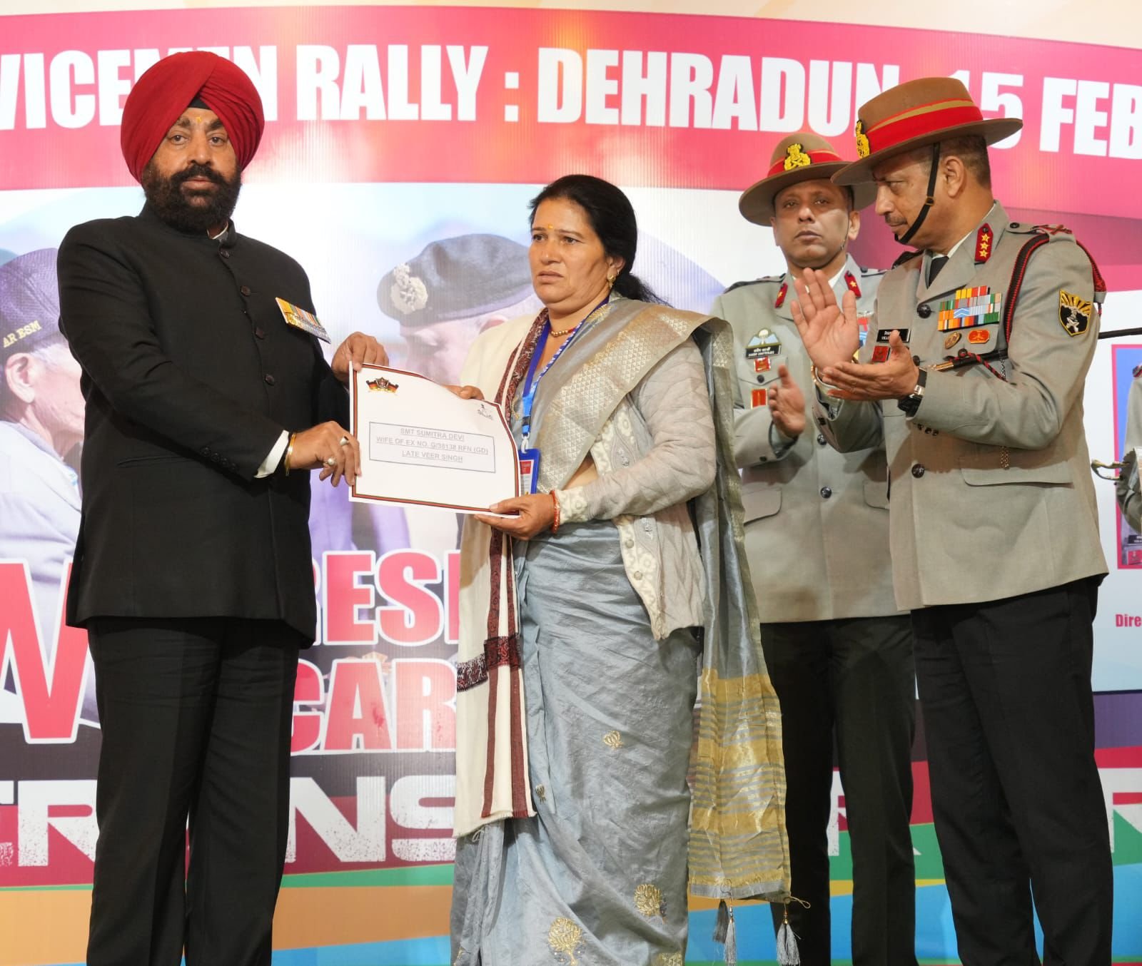 देहरादून,15 फरवरी 2025(PIB) उत्तराखंड के वीर सैनिकों को हार्दिक श्रद्धांजलि देने के लिए असम राइफल्स ने मुख्यालय महानिदेशालय असम राइफल्स के तत्वावधान में जेपी प्लाजा, कारगी चौक, देहरादून में एक विशाल भूतपूर्व सैनिक रैली का आयोजन किया। इस रैली का मुख्य उद्देश्य था उन लोगों की सेवा करना जिन्होंने हमारी सेवा की, जिसमें खटीमा, देवस्थल, बागेश्वर, गैरसैंण और देहरादून स्थित पांच ARESA केंद्रों से वीरता पुरस्कार विजेताओं, वीर नारियों, विधवाओं और उनके आश्रितों सहित 900 से अधिक भूतपूर्व सैनिकों ने भाग लिया।