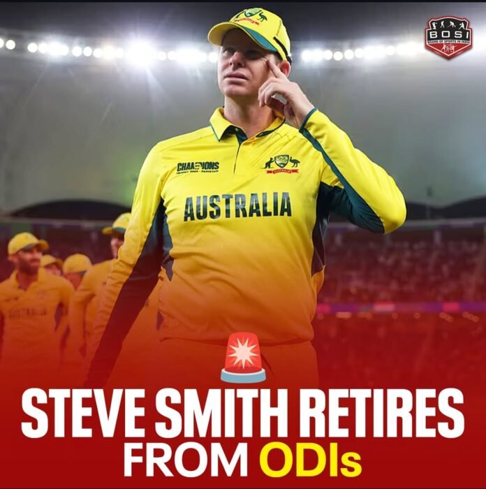 नईदिल्ली, 05 मार्च। चैंपियंस ट्रॉफी के सेमीफाइनल में भारत से शिकस्त मिलने के बाद ऑस्ट्रेलिया के दिग्गज बैट्समैन स्टीव स्मिथ ने सन्यास ले लिया है. सेमिफाइनल में ऑस्ट्रेलियाई टीम की कप्तान संभालने वाले स्मिथ अब वनडे मैच नहीं खेलेंगे. ऑस्ट्रेलिया क्रिकेट ने बुधवार को इसकी घोषणा की.