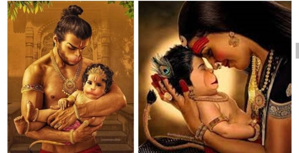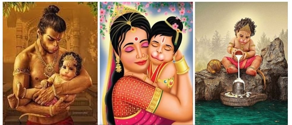 हनुमान जी का जन्म त्रेता युग मे अंजना (एक नारी वानर) के पुत्र के रूप मे हुआ था।