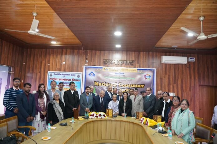 देहरादून।राष्ट्रीय उपभोक्ता अधिकार दिवस के अवसर पर जिला पंचायत सभागार, होटल गौरव, तहसील चौक, देहरादून में भारतीय मानक ब्यूरो (BIS), देहरादून एवं ऑल इंडिया कंज़्यूमर एंड इन्वेस्टर वेलफेयर ट्रस्ट, देहरादून के संयुक्त तत्वावधान में एक विशेष जन-जागरूकता कार्यक्रम का आयोजन किया गया। कार्यक्रम की थीम “सशक्त उपभोक्ता – सतत एवं निष्पक्ष बाज़ार के लिए” रही।