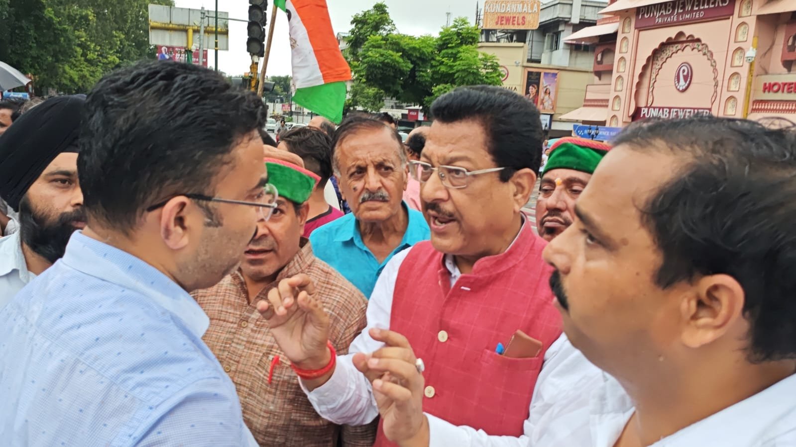 कांग्रेस मुख्यालय पर मौजूद कार्यकर्ता धस्माना के नेतृत्व में गेट पर डट गए और “वोट चोर गद्दी छोड़” के नारों से माहौल गूंज उठा। मौके पर पहुंचे एसपी सिटी और सिटी मजिस्ट्रेट ने कांग्रेस नेताओं से शांति बनाए रखने का आग्रह किया, लेकिन धस्माना ने कड़ा एतराज़ जताते हुए कहा कि जब उन्होंने पहले ही पुलिस को सूचना दी थी, तो भाजपा कार्यकर्ता कांग्रेस मुख्यालय तक कैसे पहुंच गए ? उन्होंने साफ कहा कि पहले भाजपा कार्यकर्ताओं को वापस भेजा जाए या गिरफ्तार किया जाए, तभी कांग्रेस कार्यकर्ता भी पीछे हटेंगे।