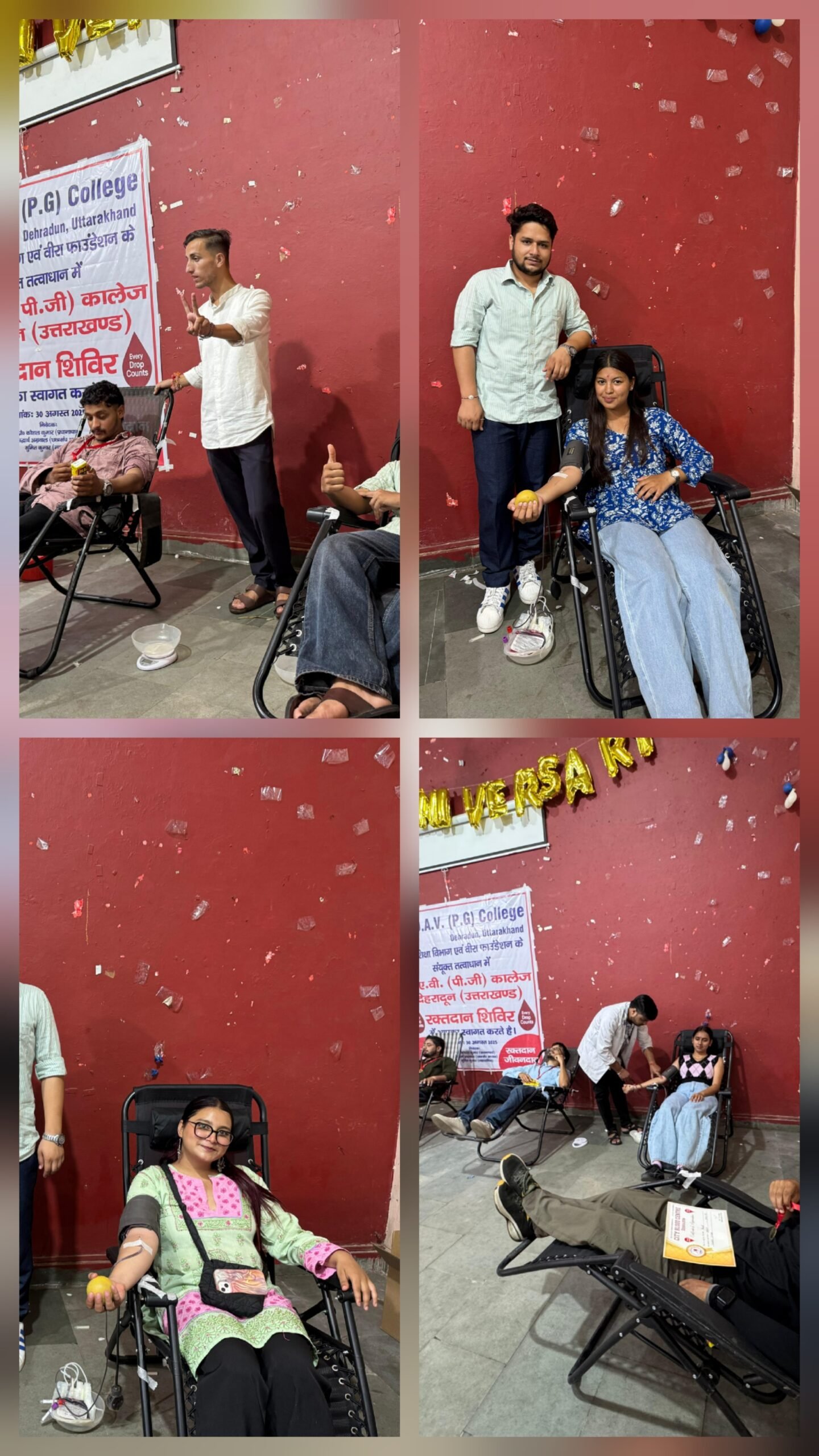 देहरादून। डीएवी पीजी कॉलेज में आज दिनांक 30 अगस्त 2025 को छात्रसंघ अध्यक्ष सिद्धार्थ अग्रवाल के नेतृत्व में रक्तदान शिविर का आयोजन किया गया। शिविर में छात्र-छात्राओं के साथ शिक्षकों ने भी बढ़-चढ़कर हिस्सा लिया और महादान के इस पुनीत कार्य में अपनी भागीदारी निभाई।