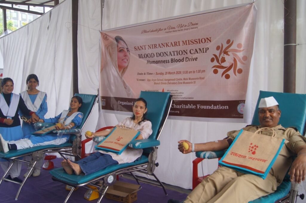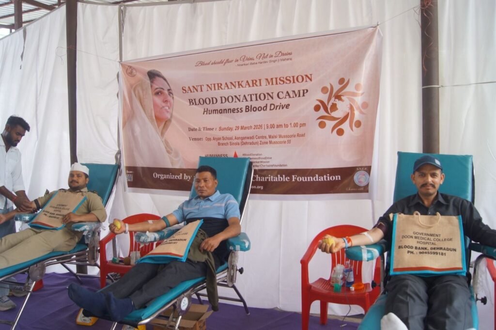 देहरादून । मानवमात्र के कल्याण और निःस्वार्थ सेवा की भावना को साकार करते हुए संत निरंकारी चैरिटेबल फाउंडेशन द्वारा ब्रांच सिनौला, आंगनबाड़ी केंद्र मलसी रोड, जोन मसूरी-55, देहरादून में एक भव्य रक्तदान शिविर का आयोजन किया गया। यह आयोजन सद्गुरु माता सुदीक्षा जी महाराज के पावन आशीर्वाद और दिव्य मार्गदर्शन में संपन्न हुआ, जिसमें मिशन के 61 भक्तों ने उत्साहपूर्वक रक्तदान कर मानव सेवा का अनुपम उदाहरण प्रस्तुत किया।