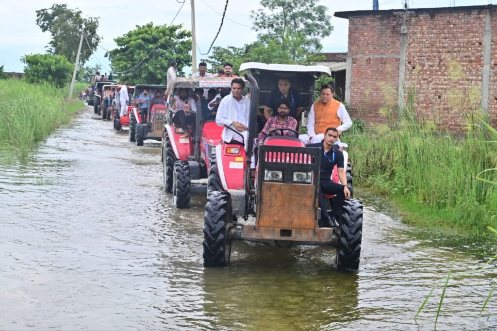 – कठिन परिस्थितियों को दरकिनार करते हुए मुख्यमंत्री ने ट्रैक्टर के माध्यम से ग्रामीण और जलमग्न क्षेत्रों तक पहुँचकर स्थलीय निरीक्षण किया