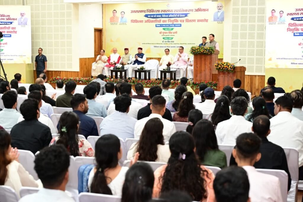 देहरादून(आरएनएस)। मुख्यमंत्री पुष्कर सिंह धामी ने मुख्य सेवक सदन में स्वास्थ्य विभाग द्वारा आयोजित उत्तराखंड चिकित्सा स्वास्थ्य सशक्तिकरण अभियान में प्रतिभाग करते हुए 220 नव नियुक्त चिकित्सा अधिकारियों को नियुक्ति पत्र वितरित किए।