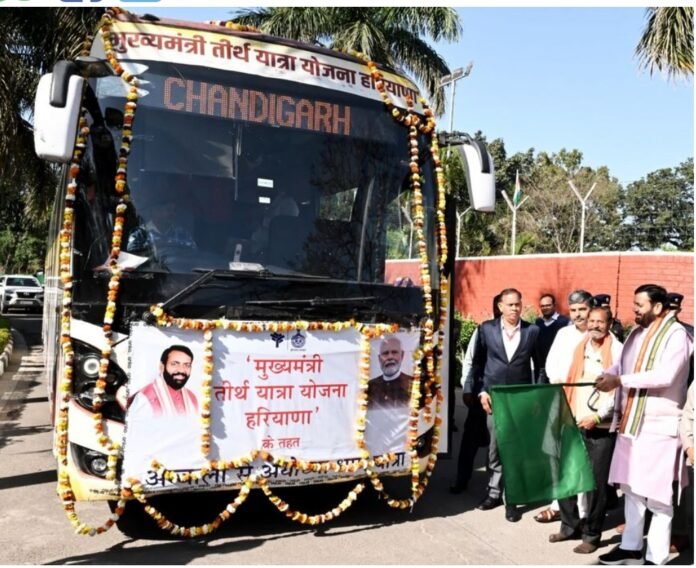 मुख्यमंत्री नायब सिंह ने चंडीगढ़ से मुख्यमंत्री तीर्थ यात्रा योजना के तहत अयोध्या यात्रा बस को हरी झंडी दिखाकर किया रवाना