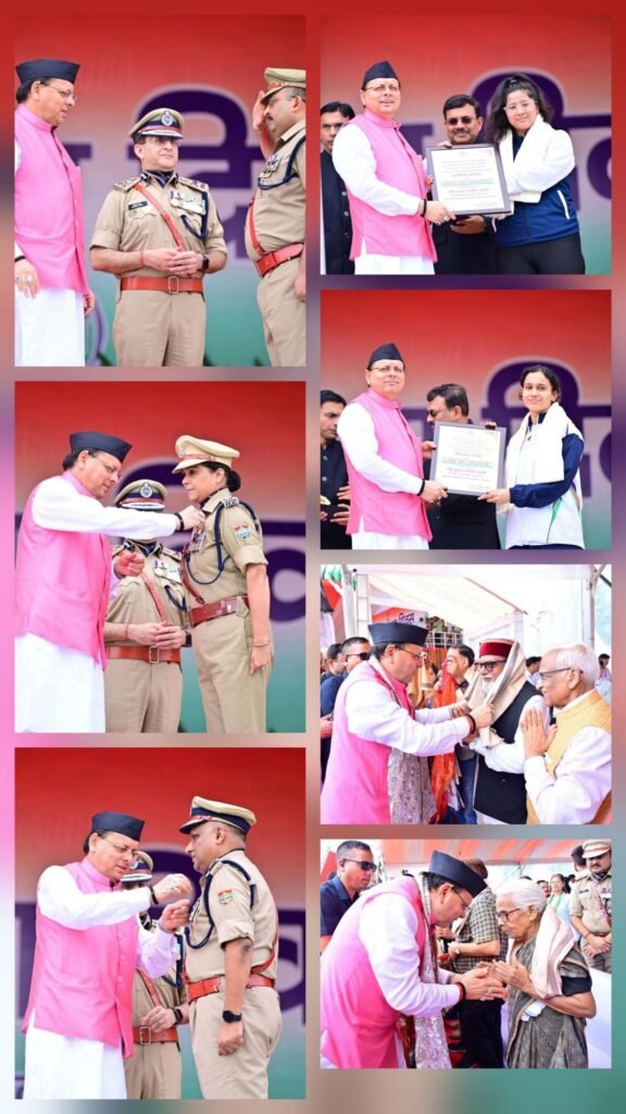 मुख्यमंत्री ने कार्यक्रम के दौरान अपर पुलिस महानिदेशक अजय प्रकाश अंशुमान को राष्ट्रपति विशिष्ट सेवा पदक से सम्मानित किया। सेवा के आधार पर मुख्यमंत्री सराहनीय सेवा पदक से श्वेता चौबे, सेनानायक आईआरबी द्धितीय देहरादून, योगेश चन्द्र पुलिस उपाधीक्षक, विपिन चन्द्र पाठक, निरीक्षक नागरिक पुलिस,नरेन्द्र सिंह बिष्ट, निरीक्षक नागरिक पुलिस,राकेश चन्द्र भट्ट, उप निरीक्षक नागरिक पुलिस, अजय प्रकाश सेमवाल, लीडिंग फायरमैन और सुनीत कुमार, मुख्य आरक्षी को सम्मानित किया गया।