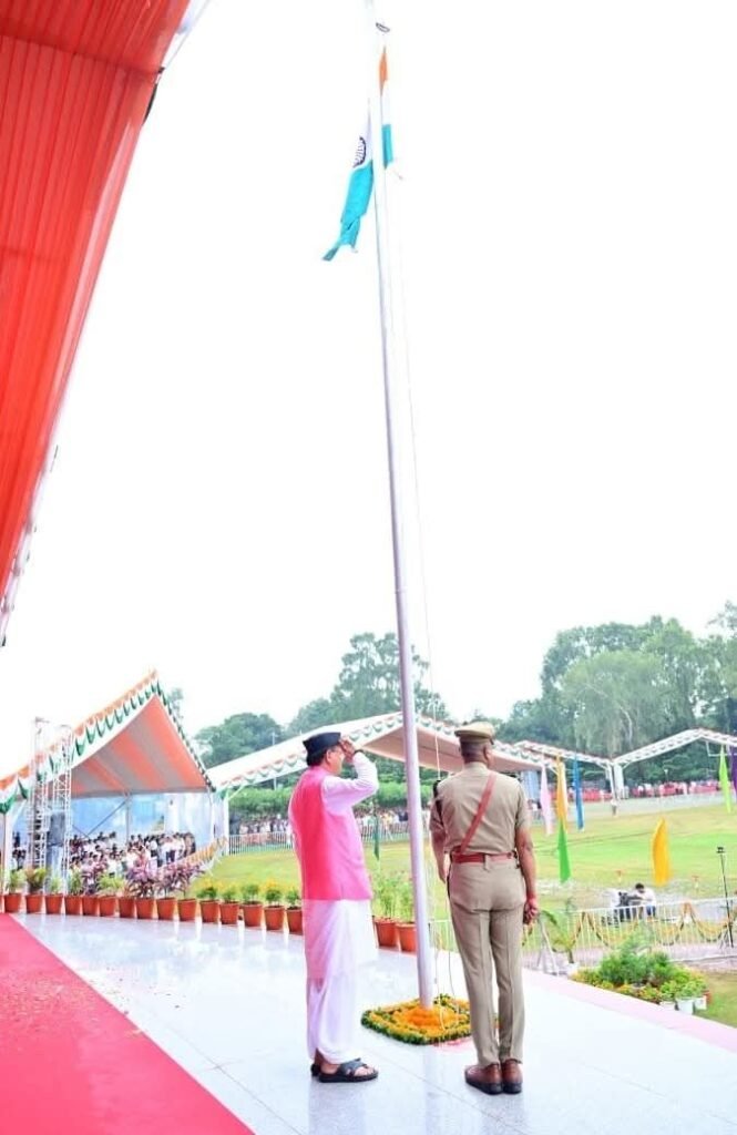 मुख्यमंत्री ने कहा कि आजादी की 78 वर्षों की गौरवपूर्ण यात्रा में देशवासियों के अदम्य साहस, अटूट समर्पण और निरन्तर परिश्रम के बल पर हमारा राष्ट्र अनेक चुनौतियों का सामना करने के बावजूद सशक्त और आत्मनिर्भर राष्ट्र के रूप में आगे बढ़ रहा है। प्रधानमंत्री नरेंद्र मोदी जी के नेतृत्व में, वर्ष 2047 तक भारत पूर्ण विकसित राष्ट्र के रूप में स्थापित होने के संकल्प के साथ, तीव्र गति से प्रगति के पथ पर अग्रसर है। आज भारत की अर्थव्यवस्था विश्व की चौथी सबसे बड़ी अर्थव्यवस्था बन गई है। रक्षा, विज्ञान, तकनीकी कृषि, स्वास्थ्य, शिक्षा, इंफ्रास्ट्रक्चर हर क्षेत्र में देश तेजी से कार्य हो रहे हैं। वैश्विक स्तर पर भारत एक सशक्त राष्ट्र के रूप में उभर रहा है। प्रधानमंत्री के नेतृत्व में सेना का मनोबल बढ़ाने के साथ ही देश को रक्षा के क्षेत्र में आत्मनिर्भर बनाया जा रहा है। ‘ऑपरेशन सिंदूर’ के तहत भारत की शक्ति और सामर्थ्य को पूरी दुनिया ने देखा।
