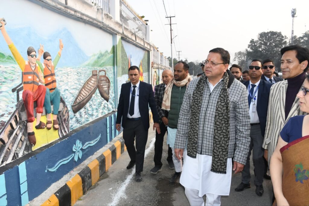 हल्द्वानी में स्मार्ट सिटी के तर्ज पर सड़कों का चौड़ीकरण कराया गया है। साथ ही सड़कों का सौंदर्यीकरण स्थानीय कुमाऊनी संस्कृति में भित्तिचित्र बनाकर सजाया जा रहा है। हल्द्वानी भ्रमण पर आए मुख्यमंत्री श्री पुष्कर सिंह धामी द्वारा नैनीताल रोड काठगोदाम से नरीमन चौराहे तक पैदल चल कर सड़क का निरीक्षण किया गया। इस दौरान उन्होंने बनाए गए भित्तिचित्र व पेंटिंग को देखा व किए गए सौंदर्यीकरण की सराहना की।