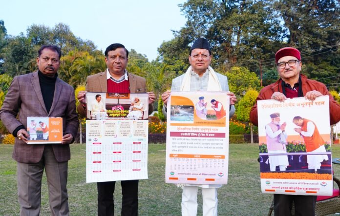 देहरादून।मुख्यमंत्री पुष्कर सिंह धामी ने मुख्यमंत्री आवास में सूचना विभाग, उत्तराखंड सरकार द्वारा प्रकाशित नववर्ष 2026 के आधिकारिक कैलेंडर का विधिवत विमोचन किया। इस अवसर पर मुख्यमंत्री ने कैलेंडर के आकर्षक स्वरूप, उत्कृष्ट मुद्रण गुणवत्ता एवं विषयवस्तु की सराहना करते हुए कहा कि यह कैलेंडर राज्य सरकार की योजनाओं, उपलब्धियों तथा जनकल्याणकारी नीतियों के साथ-साथ सरकार द्वारा लिए गए ऐतिहासिक एवं दूरदर्शी निर्णयों को प्रभावी ढंग से जनमानस तक पहुँचाने का सशक्त माध्यम है।