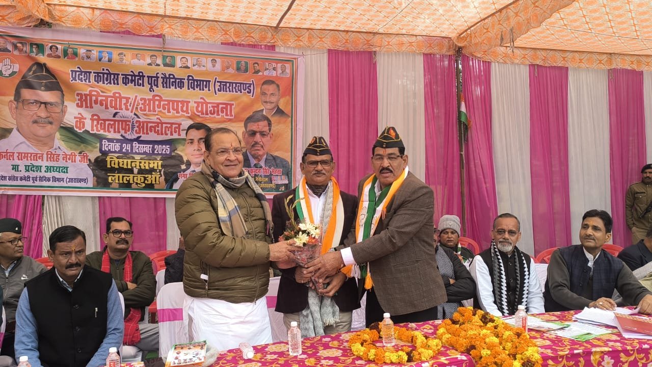 देहरादून। उत्तराखंड कांग्रेस पूर्व सैनिक विभाग के अध्यक्ष कर्नल रामरतन सिंह नेगी ने आज प्रदेश कांग्रेस मुख्यालय में प्रेस को संबोधित करते हुए बताया कि केंद्र सरकार की अग्निपथ योजना के विरोध में चलाए जा रहे आंदोलन के दूसरे चरण में कुमाऊं मंडल के विभिन्न क्षेत्रों में प्रदर्शन रैलियां और हस्ताक्षर अभियान सफलतापूर्वक संपन्न हुए। इन स्थानों में रामनगर, हल्द्वानी, रानीखेत, अल्मोड़ा, बागेश्वर और जसपुर शामिल हैं।