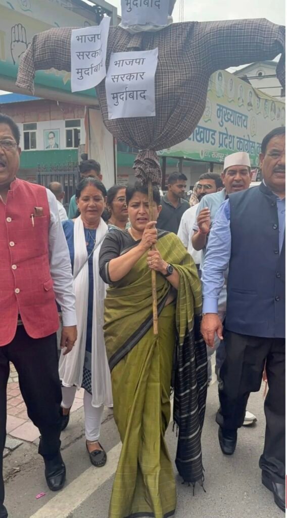 देहरादून। उत्तराखंड में कांग्रेस पार्टी ने भाजपा सरकार की उत्तराखंड विरोधी नीतियों के खिलाफ जोरदार प्रदर्शन किया। प्रदेश कांग्रेस कमेटी ने जिला मुख्यालयों पर भाजपा सरकार का पुतला दहन किया, जिसमें देहरादून मुख्यालय पर प्रदेश महिला कांग्रेस अध्यक्ष ज्योति रौतेला के नेतृत्व में महिला कांग्रेस कार्यकर्ताओं ने ऐस्लेहॉल चौक पर प्रदर्शन किया।