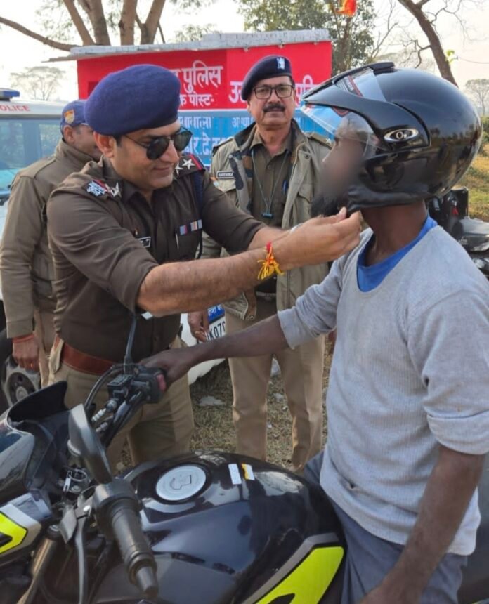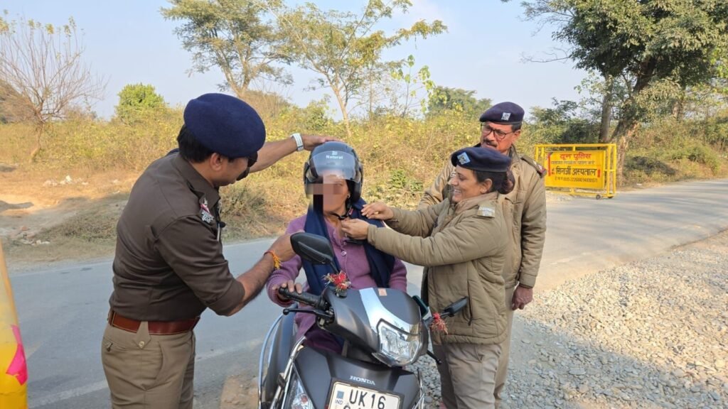 देहरादून। आमजन को यातायात नियमों एवं सड़क सुरक्षा के प्रति जागरूक करने के लिए वरिष्ठ पुलिस अधीक्षक देहरादून के निर्देशों पर दून पुलिस द्वारा जागरूकता अभियान चलाया गया। थाना बसंतविहार पुलिस ने यातायात नियमों के पालन पर जोर देते हुए बिना हेलमेट दोपहिया वाहन चला रहे चालकों को सड़क सुरक्षा का महत्व समझाया और उन्हें निःशुल्क हेलमेट वितरित किए।