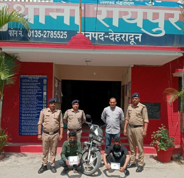 देहरादून, 11 अप्रैल2025(एजेंसिया): देहरादून पुलिस ने थाना रायपुर क्षेत्र में हुई बुजुर्ग महिला से पर्स स्नैचिंग की घटना का 24 घंटे के भीतर खुलासा करते हुए दो शातिर अभियुक्तों को गिरफ्तार किया है। पुलिस ने अभियुक्तों के कब्जे से लूटी गई धनराशि, मोबाइल फोन, घटना में प्रयुक्त मोटरसाइकिल और एक अवैध चाकू भी बरामद किया है।