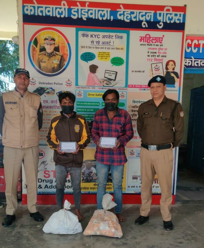 देहरादून। कोतवाली डोईवाला क्षेत्र में हुई चोरी की घटना का दून पुलिस ने 6 घंटे के अंदर खुलासा कर दिया है। पुलिस ने घटना में शामिल 2 आरोपियों को गिरफ्तार कर लिया है, जिनके कब्जे से चोरी की गई नगदी और देशी शराब बरामद की गई है।