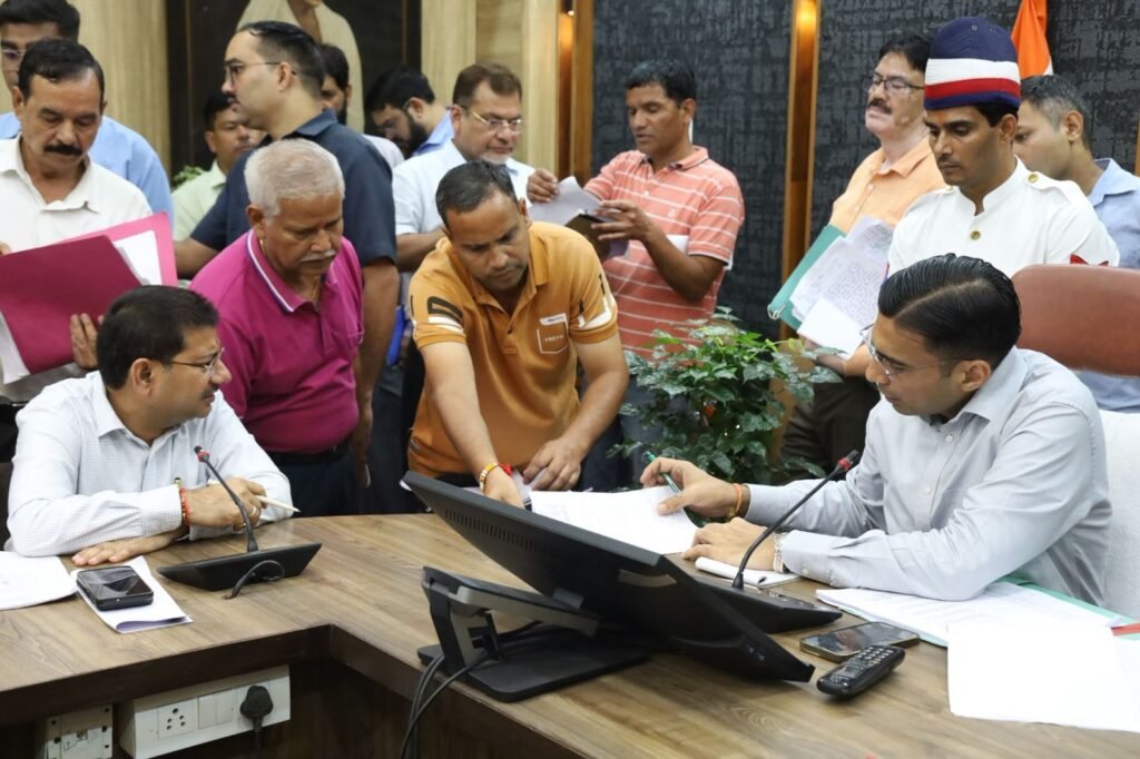 देहरादून(आरएनएस)। जिलाधिकारी सविन बसंल ने आज ऋषिपर्णा सभागार में जनता दर्शन कार्यक्रम में जन समस्याएं सुनी। भारी बारिश के बावजूद बडी संख्या में फरियादी जनता दरबार पहुंचे। जनता दरबार में पहुंचे अधिकांश फरियादियों ने भूमि और घरेलू विवाद के मामले प्रमुखता से रखे। इसके अतिरिक्त मुआवजा, आर्थिक सहायता, पेयजल, एमडीडीए, नगर निगम, पुलिस, शिक्षा, रोजगार आदि से जुड़ी 78 समस्याएं जिलाधिकारी के समक्ष रखी। जिनमें से अधिकांश शिकायतों का जिलाधिकारी ने मौके पर निराकरण किया।