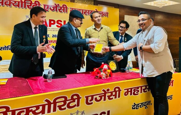 देहरादून –18 अप्रैल 2025: आज देहरादून स्थित “द ओनिनेस होटल” में सेंट्रल एसोसिएशन ऑफ प्राइवेट सिक्योरिटी इंडस्ट्री (सीएपीएसआई) द्वारा आयोजित प्राइवेट सिक्योरिटी एजेंसी महासम्मेलन के अवसर पर उत्तराखंड के श्री देवव्रत पुरी गोस्वामी, निदेशक तियानझू इन्वेस्टिगेशन सर्विसेज को विशेष सम्मान से सम्मानित किया गया।