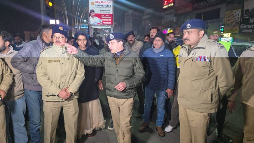 देहरादून। उत्तराखंड के पुलिस महानिदेशक (डीजीपी)दीपम सेठ ने नववर्ष की पूर्व रात्रि पर स्वयं जनपद देहरादून के व्यस्त मार्गों का निरीक्षण करते हुए सुरक्षा और यातायात व्यवस्था का गहन जायजा लिया। इस दौरान उन्होंने पर्यटकों की भारी संख्या में आने की संभावना को देखते हुए अधिकारियों को कड़ी सुरक्षा प्रबंध सुनिश्चित करने के निर्देश दिए।