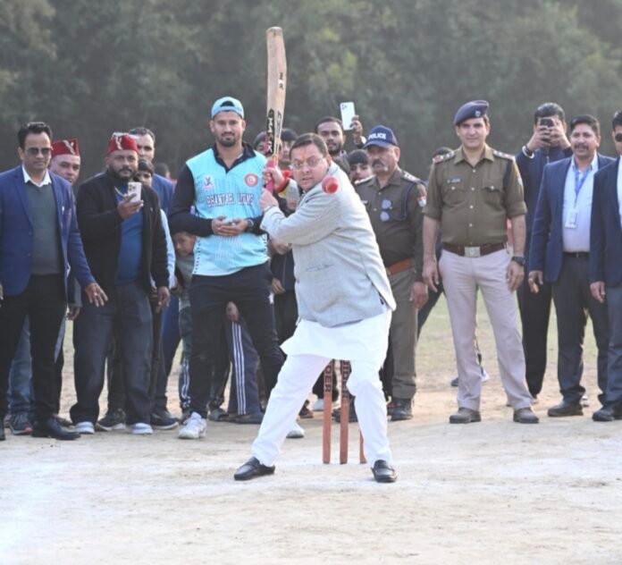 खटीमा ।बिरिया मझोला खटीमा में स्वर्गीय मनीष चंद स्मृति द्वितीय ग्रामीण क्रिकेट टूर्नामेंट 2026 के समापन एवम् पुरुस्कार वितरण समारोह में सूबे के माननीय मुख्यमंत्री पुष्कर सिंह धामी ने प्रतिभाग कर खिलाड़ियों को पुरुस्कार वितरित किया। टूर्नामेंट में 16 टीमों द्वारा प्रतिभाग किया गया। फाइनल मुकाबला नगला तराई खटीमा व उजालिकोट टनकपुर के बीच खेला गया। मुख्यमंत्री श्री धामी ने दोनों टीमों के खिलाड़ियों से परिचय प्राप्त कर शुभकामनाएं दी व क्रिकेट में हाथ भी आजमाए। पहले खेलते हुए नगला तराई खटीमा ने 108 का लक्ष्य दिया जबकि उजलीकोट ने लक्ष्य प्राप्त कर 03 विकेट से जीत हासिल की।