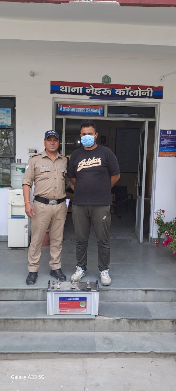 देहरादून,दिनाँक: 20-04-2025 : दिनांक 18.04.25 को वादी राजकुमार मित्तल स्व0 जय कुमार मित्तल द्वारा थाना नेहरू कॉलोनी पर सूचना दी से अज्ञात व्यक्ति द्वारा उनके हरिद्वार रोड स्थित होटल में लगे जेनेटर से बैट्री चोरी कर ली हैं। प्रार्थना पत्र के आधार पर थाना नेहरू कालोनी पर तत्काल अभियोग पंजीकृत किया गया। उक्त घटना के अनावरण हेतु थाना स्तर पर गठित पुलिस टीम द्वारा सुरागरसी पतारसी करते हुए स्थानीय मुखबिर तंत्र को सक्रिय किया गया। पुलिस टीम द्वारा किये जा रहे प्रयासों के परिणाम स्वरूप दिनांक: 19/04/25 को मुखबिर की सूचना पर अजबपुर फ्लाईओवर के नीचे से एक अभियुक्त अर्पित को उक्त घटना में चुराई गई बैट्री के साथ गिरफ्तार किया। पूछताछ में अभियुक्त द्वारा बताया गया कि वो नशे का आदी है तथा अपने नशे की आवश्यकताओं की पूर्ति के लिये अभियुक्त द्वारा उक्त चोरी की घटना को अंजाम दिया गया था। पूछताछ में अभियुक्त का पूर्व में भी चोरी के अभियोगों में जेल जाना प्रकाश में आया है, जिसके सम्बन्ध में जानकारी की जा रही है।