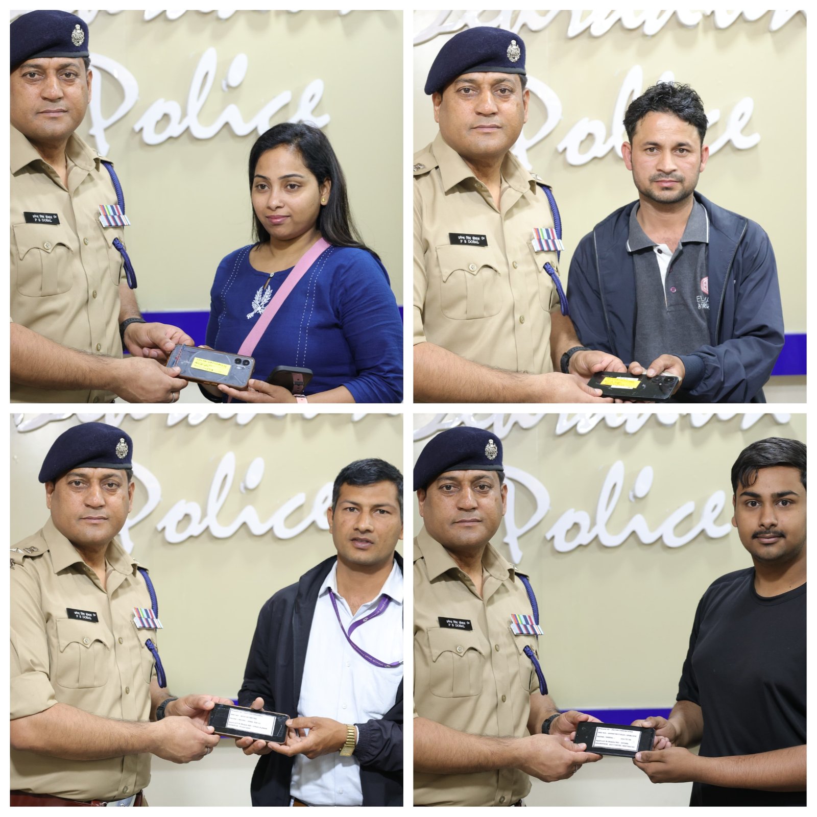 देहरादून।देहरादून पुलिस की साइबर क्राइम सेल ने आज खोए हुए मोबाइल फोन उनके वास्तविक स्वामियों को वापस लौटाकर कर्तव्यनिष्ठा की एक बड़ी मिसाल पेश की है। वरिष्ठ पुलिस अधीक्षक (SSP) देहरादून के कुशल निर्देशन में टीम ने अथक परिश्रम करते हुए लगभग 70 लाख 45 हजार रुपये मूल्य के 415 स्मार्टफोन्स बरामद किए, जिन्हें आज पुलिस कार्यालय में आयोजित एक कार्यक्रम के दौरान उनके मालिकों के सुपुर्द कर दिया गया।