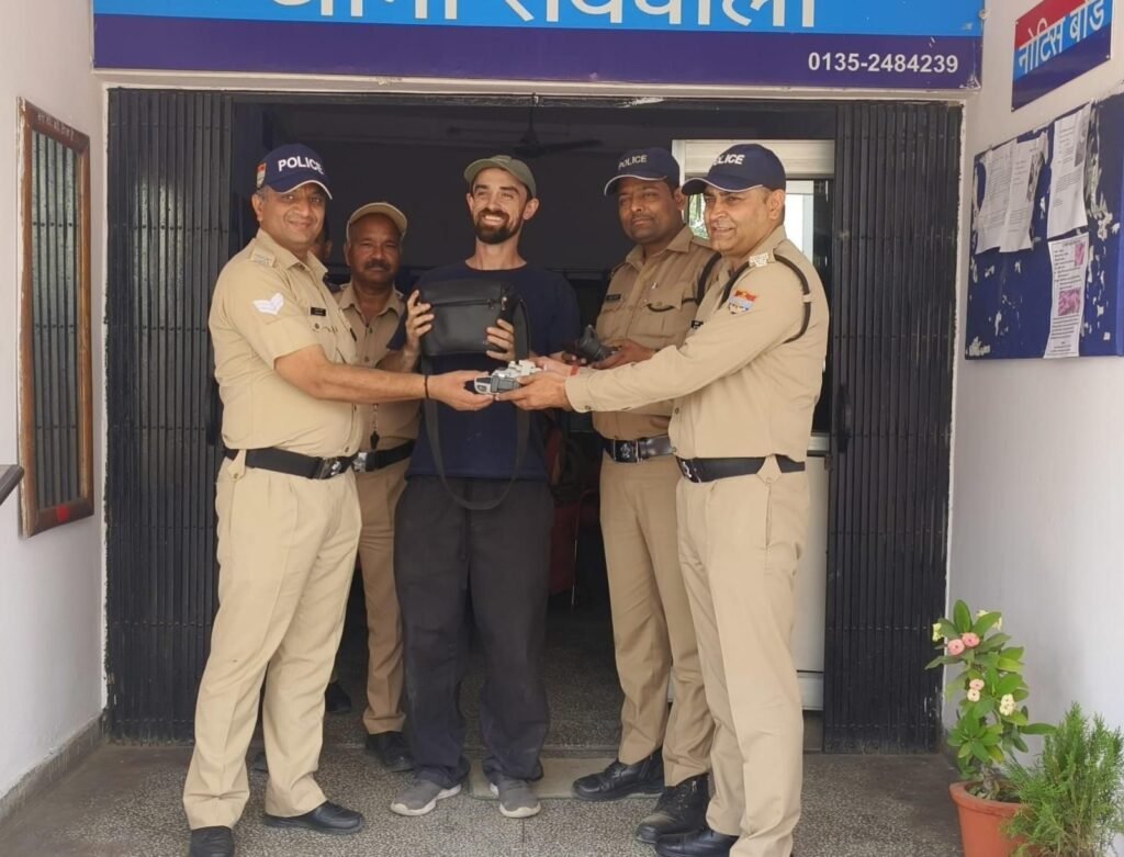देहरादून,07/04/2025 : दिनांक 07-04-25 की प्रातः स्काटलैंड निवासी एक विदेशी नागरिक डैनी आरनोल्ड द्वारा थाना रायवाला पर आकर बताया कि दिनांक: 05/04/2025 को नेपाली फार्म से हरिद्वार होते हुये अमृतसर पंजाब जा रहा था, तो रास्ते में उसका एक बैग जिसमे उसका कीमती सामान जिसमें ड्रोन कैमरा, माईक्रोफोन, गिम्बल, पर्स व 02 एटीएम कार्ड आदि थे, जिनकी कीमत लगभग 1,65,000 रू0 से अधिक हैं, कही खो गया है। जिस पर रायवाला पुलिस ने उक्त व्यक्ति द्वारा बताये गये मार्ग पर लगे 150 से अधिक सीसीटीवी कैमरों की फुटेजों को चैक कर आवश्यक जानकारियां एकत्रित की गई तो विदेशी नागरिक का बैग रोडवेज की बस में छूटने के सम्बन्ध में जानकारी प्राप्त हुई। जिस पर पुलिस टीम द्वारा सम्बन्धित बस के परिचालक का नम्बर प्राप्त कर उससे सम्पर्क करते हुए विदेशी नागरिक डैनी आरनोल्ड के खोये हुए बैग व समस्त कीमती सामान को ब्राहमणवाला थाना पटेलनगर से बरामद कर विदेशी नागरिक डैनी को वापस लौटाया गया। अपने कीमती सामान को सकुशल वापस पाकर तथा पुलिस द्वारा की गयी त्वरित कार्यवाही व पुलिस की कार्यशैली की विदेशी नागरिक डैनी द्वारा प्रशंसा करते हुए दून पुलिस का आभार व्यक्त किया गया।
