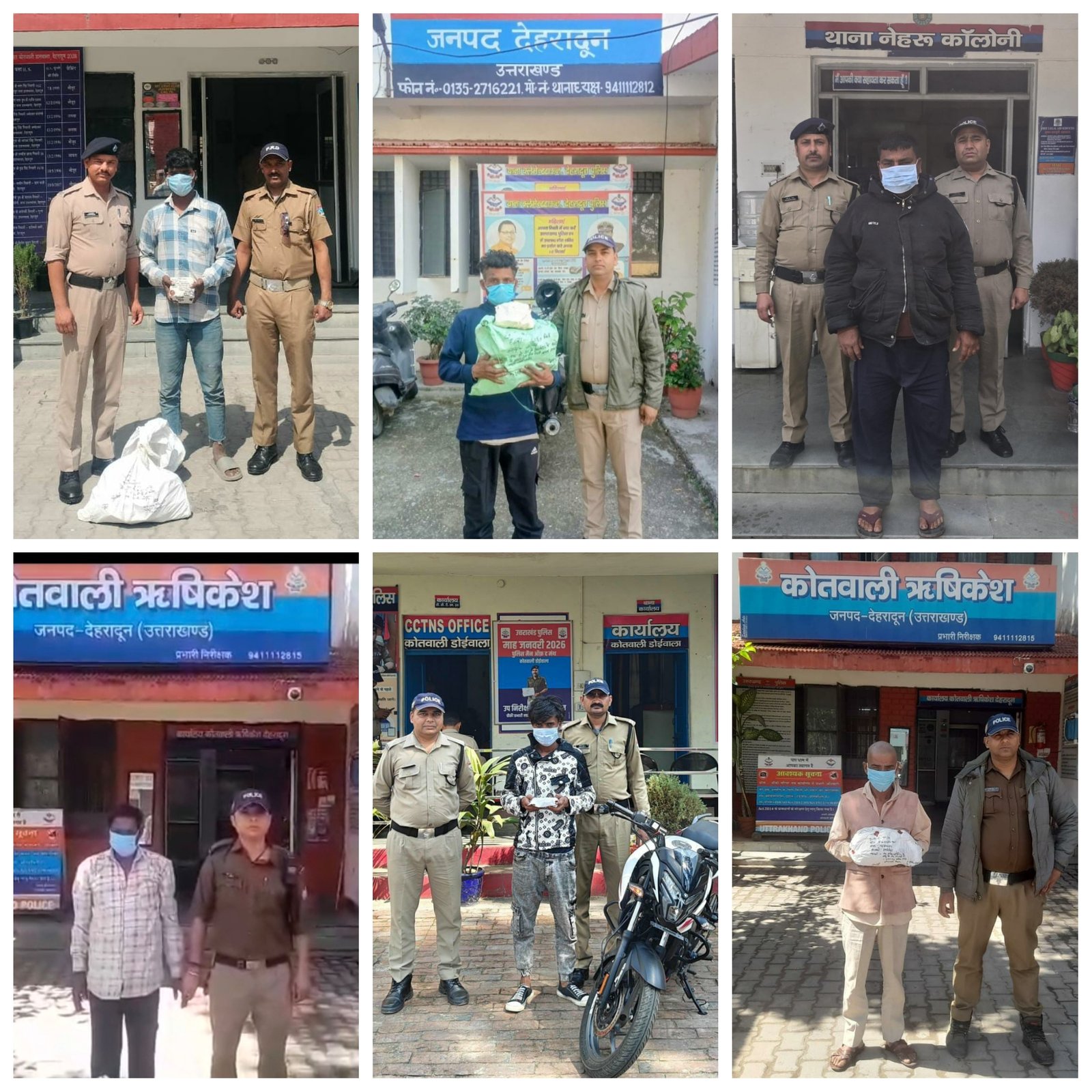 देहरादून।  दून पुलिस ने नशा तस्करों के खिलाफ एक अभियान में सफलता हासिल करते हुए 01 हिस्ट्रीशीटर सहित 06 नशा तस्करों को गिरफ्तार किया है। पुलिस ने इन अभियुक्तों के कब्जे से 1 किलो 944 ग्राम अवैध गांजा, 5.18 ग्राम स्मैक, और 03 पेटी से अधिक अवैध देशी शराब बरामद की है।