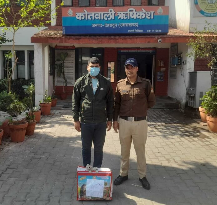 ऋषिकेश। मुख्यमंत्री पुष्कर सिंह धामी के ‘ड्रग्स फ्री देवभूमि’ अभियान के तहत दून पुलिस ने नशा तस्करों पर शिकंजा कसा। कोतवाली ऋषिकेश पुलिस ने देहरादून रोड फ्लाईओवर के पास 22 वर्षीय उत्तर प्रदेश निवासी राम खेलावन सिंह उर्फ अभिषेक को 3 किलो 93 ग्राम अवैध गांजे के साथ धर दबोचा।