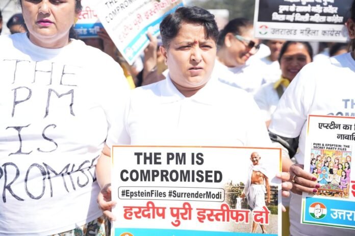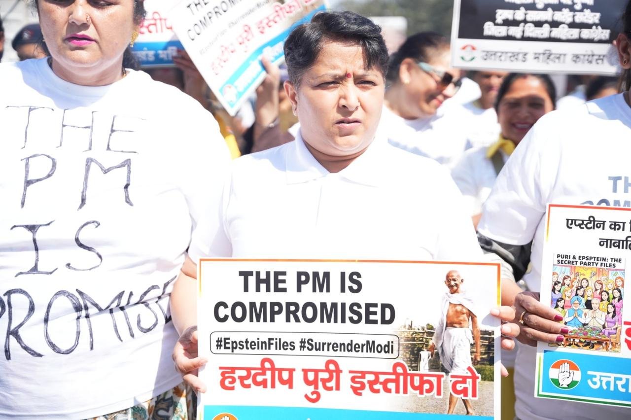देहरादून, एपस्टीन फाइल में नरेन्द्र मोदी एवं हरदीप सिंह पुरी का नाम उजागर होने की खबरों के विरोध में प्रदेश महिला कांग्रेस ने सोमवार को जोरदार प्रदर्शन किया। प्रदेश महिला कांग्रेस अध्यक्ष श्रीमती ज्योति रौतेला के नेतृत्व में कार्यकर्ताओं ने प्रदेश कांग्रेस कार्यालय राजीव भवन से गांधी पार्क–घंटाघर–पल्टन बाजार होते हुए तहसील चौक तक मार्च निकाला और वापस राजीव भवन पहुंचकर केंद्रीय मंत्री हरदीप पुरी के इस्तीफे की मांग की।