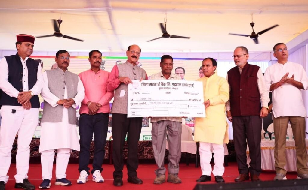 इस अवसर पर दोनों मंत्रियों ने पंडित दीनदयाल उपाध्याय सहकारिता किसान कल्याण योजना के तहत जिले के 156 किसानों को कुल 2 करोड़ 21 लाख 50 हजार रुपये का ब्याज रहित ऋण वितरित किया। योजना से लघु एवं सीमांत कृषकों को आर्थिक सशक्तिकरण की नई दिशा मिली है। वितरित ऋण में रिखणीखाल ब्लॉक के 55 किसानों को 79 लाख, नैनीडांडा के 61 किसानों को 84 लाख 50 हजार और बिरोंखाल के 40 किसानों को 58 लाख रुपये की धनराशि शामिल थी।