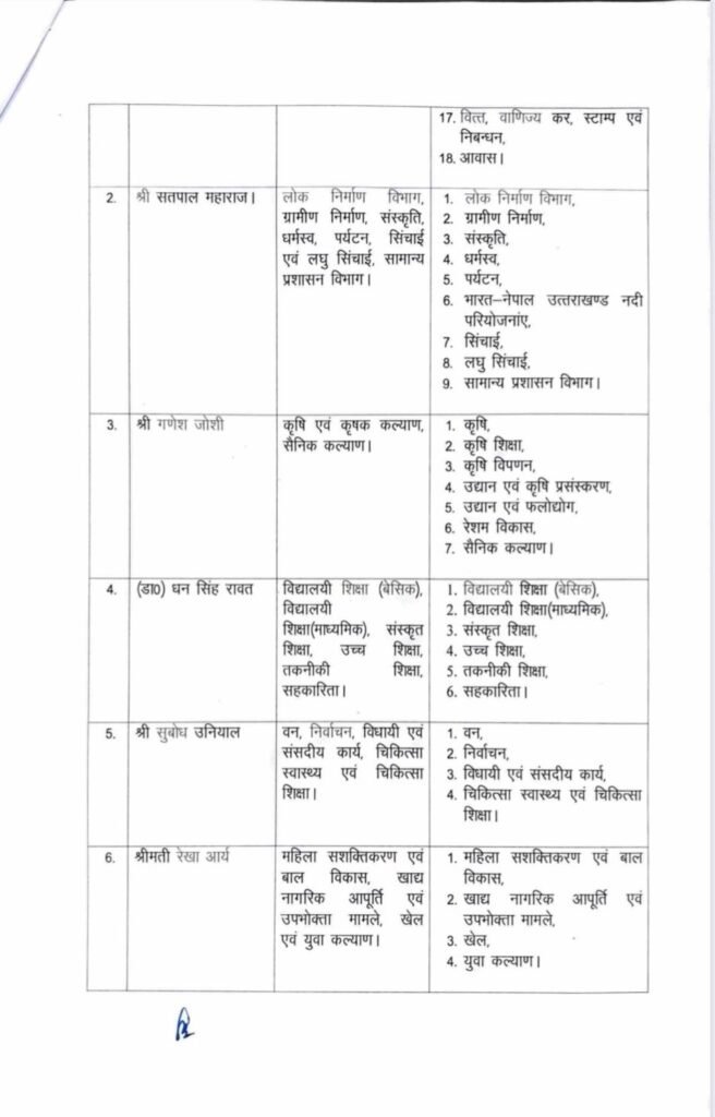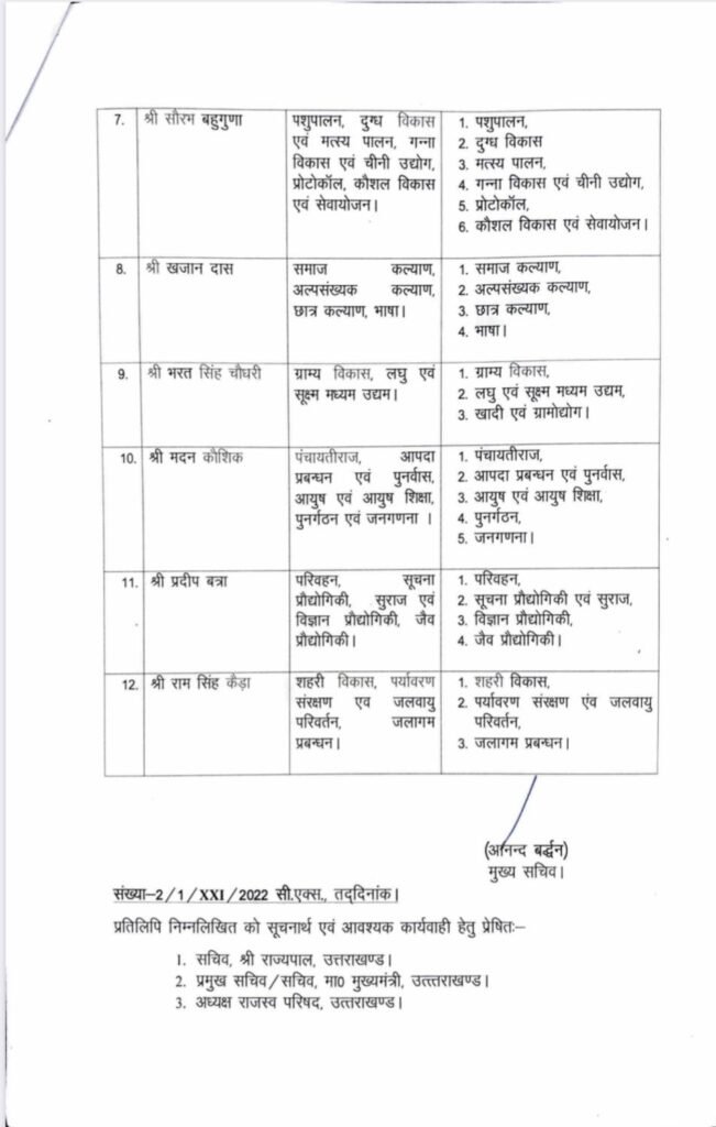 गौरतलब है कि हाल ही में मंत्रिमंडल विस्तार के बाद सभी मंत्रियों को विभागों का आवंटन कर दिया गया है। मुख्य सचिव कार्यालय से जारी आदेश के अनुसार नए एवं पुराने सभी मंत्रियों के विभागीय दायित्व तय कर दिए गए हैं।