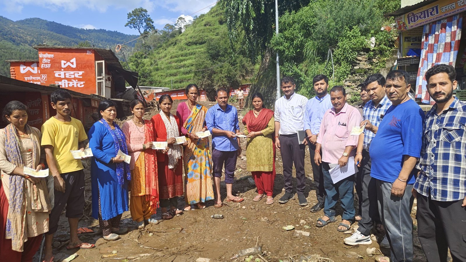 पौड़ी। आपदा के कारण पूर्ण रुप से क्षतिग्रस्त ग्राम सैंजी के 15 परिवारों/भवन स्वामियों प्रभादेवी, नीलम सिंह भण्डारी, भगत सिंह भण्डारी, पवन सिंह भण्डारी, विमला देवी, शाखा देवी, पवेली देवी, विमल सिंह, दीवान सिंह, रविन्द्र सिंह, जसवन्त सिंह, गोपाल सिंह, मनोज सिंह, कृपाल सिंह व हेमराज सिंह को मुख्यमंत्री द्वारा प्रति/भवन स्वामी 01 लाख 30 हजार रुपये के चेक वितरित कर आर्थिक सहायता प्रदान की गयी।