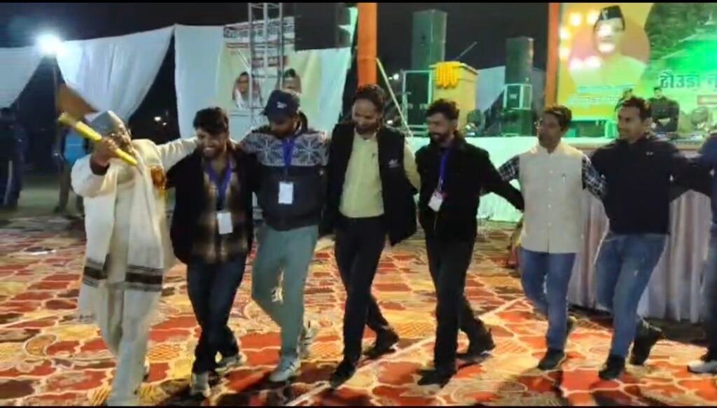 महोत्सव का केंद्र बिंदु रहा जौनसार-बाबर क्षेत्र की प्राचीन परंपरा पर आधारित ठोउड़ा नृत्य, जिसकी जड़ें धनुष–बाण खेल और युद्ध कौशल में मानी जाती हैं। पारंपरिक ऊन के वस्त्र धारण किए नर्तक अपने चरणों से निशाना साधने की तकनीक और लाठी-डांडों पर आधारित नृत्य-शैली का ऐसा रोचक प्रदर्शन कर रहे हैं कि दर्शकों की तालियाँ रुकने का नाम नहीं ले रहीं।