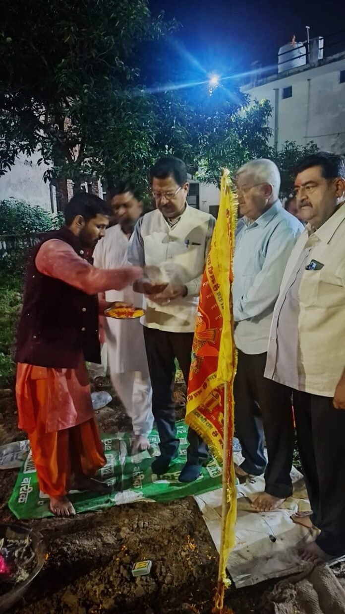 कार्यक्रम का शुभारंभ पूजा-अर्चना और भूमि पूजन से हुआ। तत्पश्चात **सूर्यकांत धस्माना** और **आचार्य अरुण कुमार** ने भगवान भोलेनाथ के मंदिर का शिलान्यास किया।