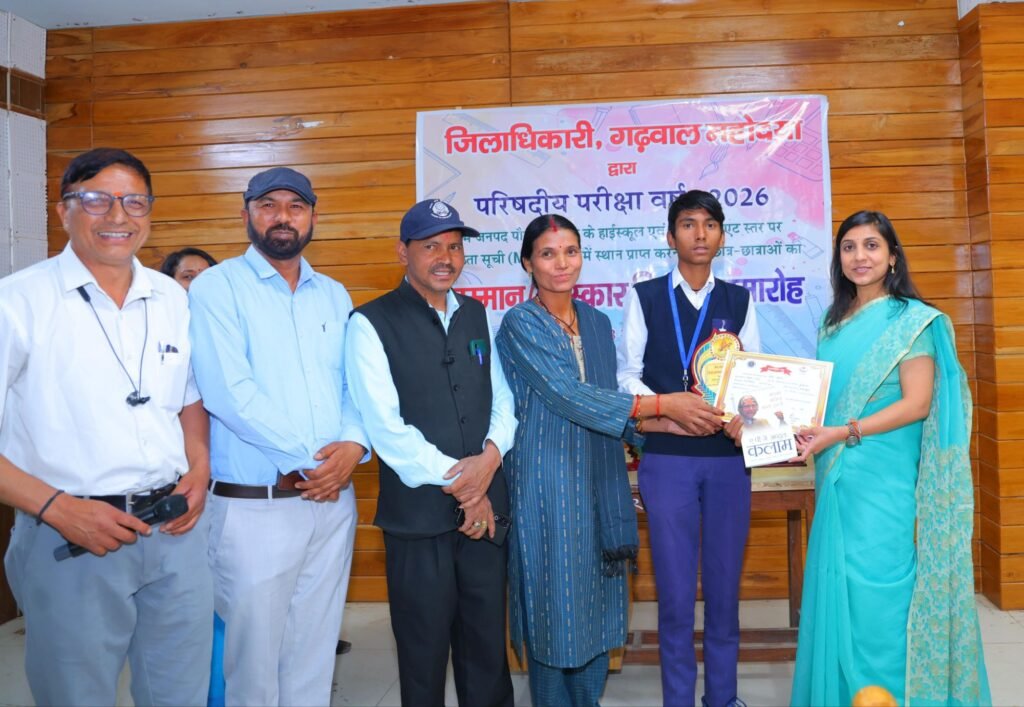 पौड़ी। उत्तराखंड परिषदीय परीक्षा वर्ष 2026 में हाईस्कूल एवं इंटरमीडिएट की श्रेष्ठता सूची में स्थान प्राप्त करने वाले जनपद के मेधावी छात्र-छात्राओं के सम्मान में कलेक्ट्रेट सभागार में एक गरिमामय सम्मान समारोह आयोजित किया गया। उत्तराखंड बोर्ड परीक्षा में जनपद पौड़ी गढ़वाल के कुल 21 विद्यार्थियों (हाईस्कूल के 14 एवं इंटरमीडिएट के 7 छात्र-छात्राओं) ने उत्कृष्ट प्रदर्शन कर जिले का नाम गौरवान्वित किया।