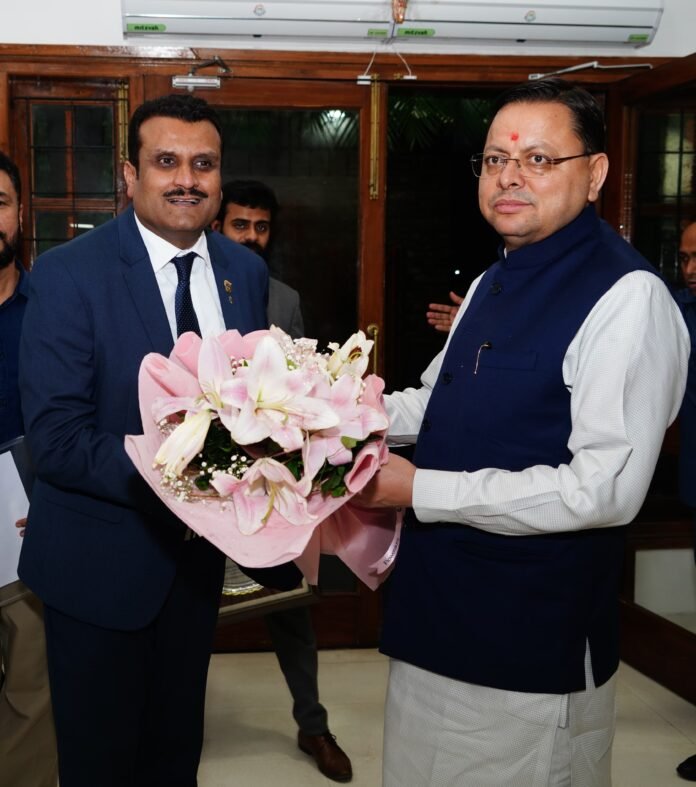 देहरादुन। मुख्यमंत्री पुष्कर सिंह धामी से मुख्यमंत्री आवास में आइस स्केटिंग एसोसिएशन ऑफ इंडिया के प्रतिनिधिमंडल ने शिष्टाचार भेंट की।