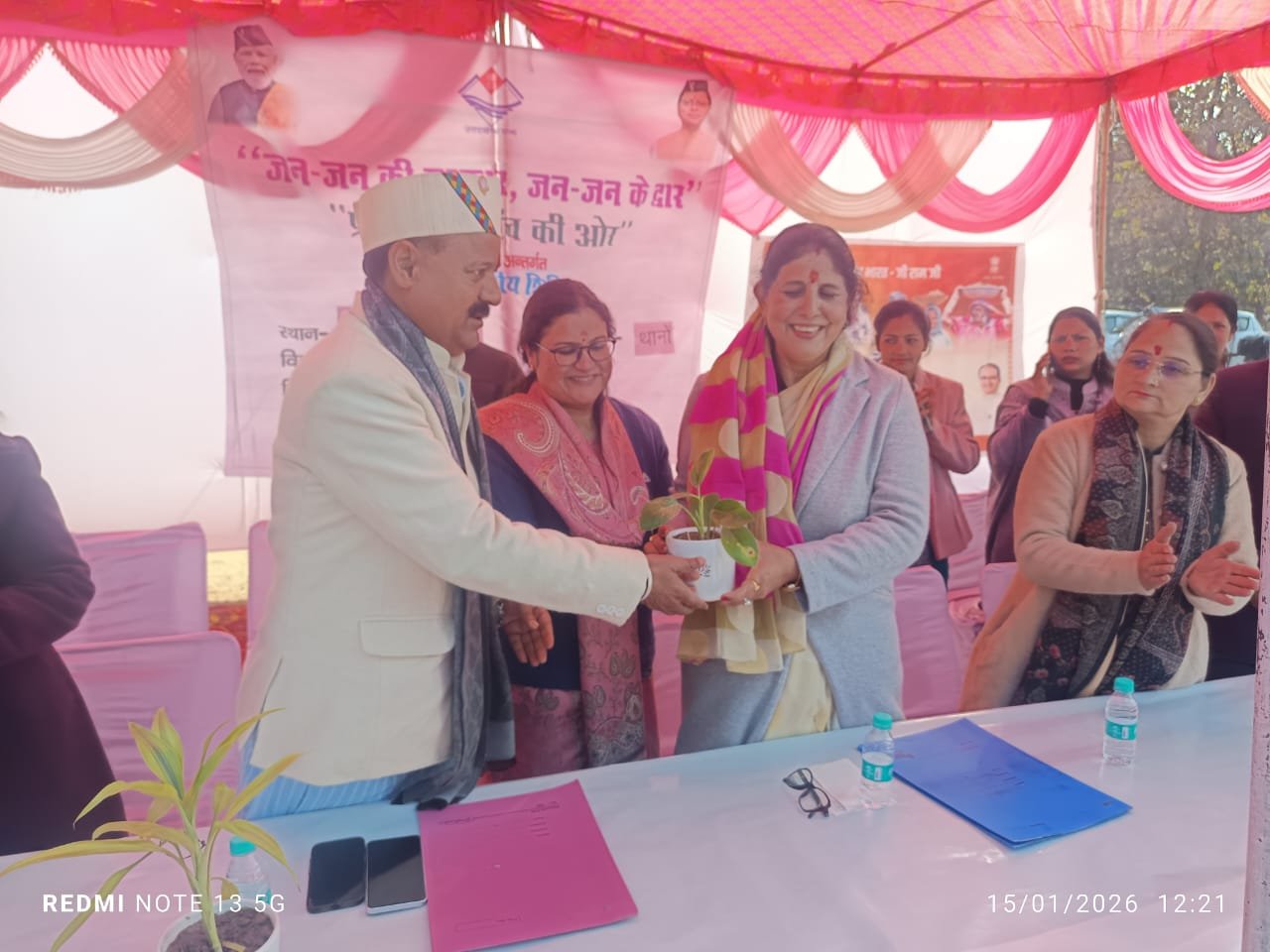 देहरादून। जन-जन की सरकार, जन-जन के द्वार कार्यक्रम के अंतर्गत न्याय पंचायत थानो में गुरुवार को जिला प्रशासन द्वारा बहुउद्देशीय शिविर का आयोजन किया गया। राजकीय इंटर कॉलेज थानो में आयोजित इस शिविर की अध्यक्षता उपजिलाधिकारी अपर्णा ढौंडियाल ने की, जबकि मुख्य अतिथि के रूप में डोईवाला विधायक बृजभूषण गैरोला तथा दर्जा प्राप्त राज्य मंत्री मधु भट्ट उपस्थित रहीं। शिविर में ग्रामीणों की समस्याओं के समाधान के लिए विभिन्न विभागों द्वारा स्टॉल लगाए गए और कुल 65 शिकायतें प्राप्त हुईं, जिनमें से अधिकांश का मौके पर ही निस्तारण कर दिया गया।