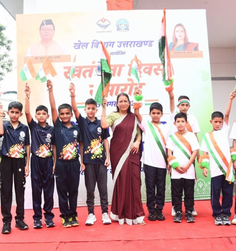 स्वतंत्रता दिवस:खेल मंत्री रेखा आर्या ने राष्ट्रीय ध्वज फहराया, छात्रों को प्रोत्साहित भी किया