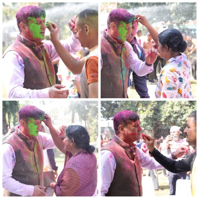 देहरादून। रंगों और खुशियों के त्योहार होली पर देहरादून पुलिस महकमे में उत्साह का दौर चला। वरिष्ठ पुलिस अधीक्षक (एसएसपी) देहरादून ने अपने जवानों व पुलिस परिजनों संग होली मनाई तथा सभी को रंग लगाकर पावन पर्व की शुभकामनाएं दीं।