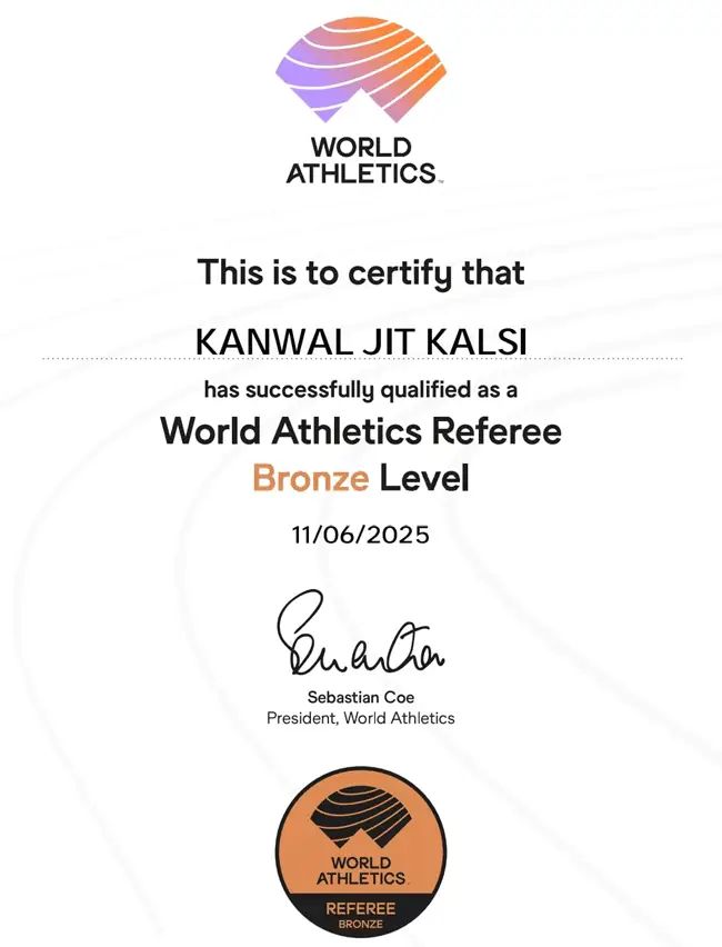 देहरादून। उत्तराखंड एथलेटिक्स संघ के सचिव केजेएस कलसी ने वर्ल्ड एथलेटिक्स रेफरी (ब्रॉन्ज लेवल) की परीक्षा उत्तीर्ण कर एक और गौरवपूर्ण उपलब्धि अपने नाम की है। उन्होंने यह परीक्षा 24 मई 2025 को दी थी, जिसका परिणाम और प्रमाणपत्र उन्हें 15 अगस्त 2025 को वर्ल्ड एथलेटिक्स की ओर से ई-मेल के माध्यम से प्राप्त हुआ।
