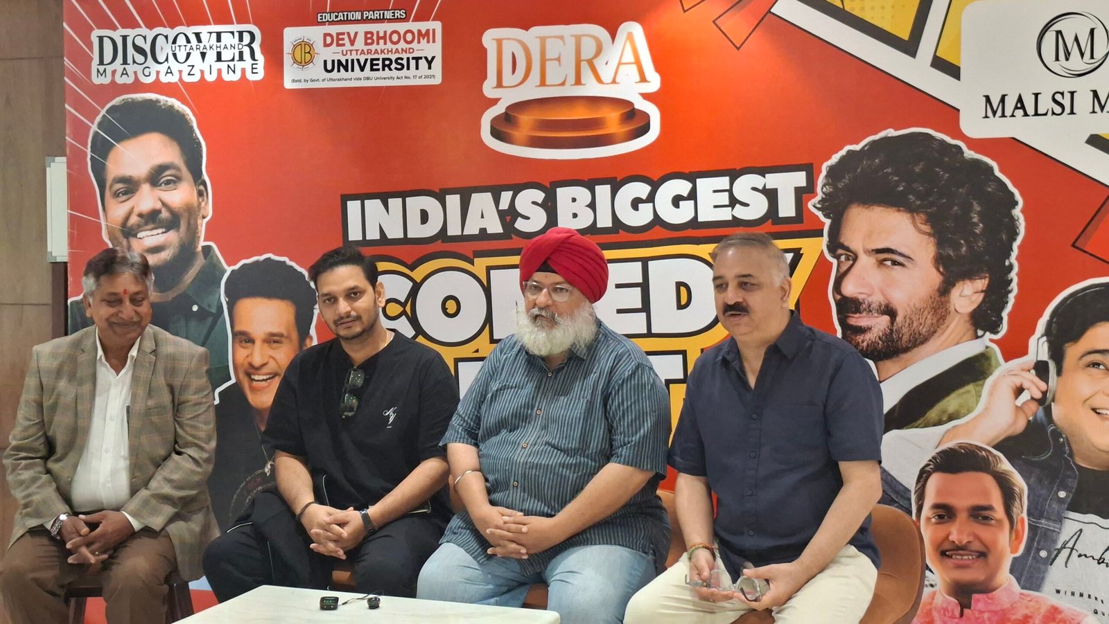 पत्रकार वार्ता के दौरान आयोजक भरत कुकरेती के साथ कॉमेडियन परीतोष त्रिपाठी, गुरपाल सिंह और सुविधा स्टोर के मालिक अनिल गुप्ता भी उपस्थित रहे।