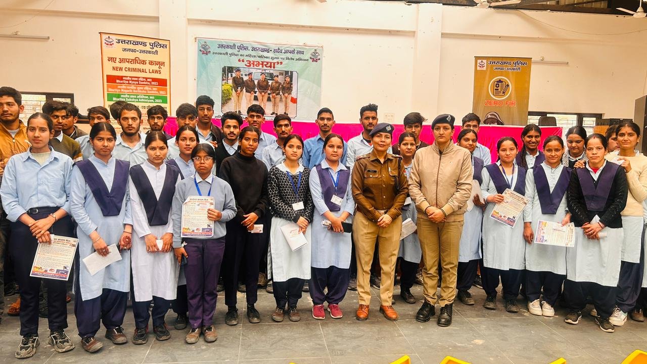 उत्तरकाशी।महिला सुरक्षा एवं सशक्तिकरण हेतु पुलिस अधीक्षक उत्तरकाशी, कमलेश उपाध्याय के निर्देशन मे संचालित अभियान “अभया” तथा “पुलिस आपके द्वार” के अंतर्गत उत्तरकाशी पुलिस की टीम द्वारा जोत सिंह रंवाल्टा राजकीय औद्योगिक प्रशिक्षण संस्थान बडकोट में जनजागरुकता कार्याक्रम आयोजित कर प्रशिक्षुओं को महिला सुरक्षा व साइबर अपराध के प्रति सजग किया गया।