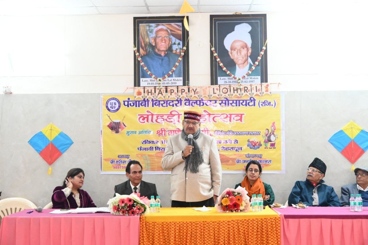 देहरादून। कैबिनेट मंत्री गणेश जोशी ने आज देहरादून के राजपुर रोड स्थित पंजाबी बिरादरी वेलफेयर सोसाइटी द्वारा आयोजित लोहड़ी पर्व कार्यक्रम में प्रतिभाग किया। इस अवसर पर उन्होंने उपस्थित जनसमूह को लोहड़ी पर्व की अग्रिम बधाई एवं शुभकामनाएं दीं।